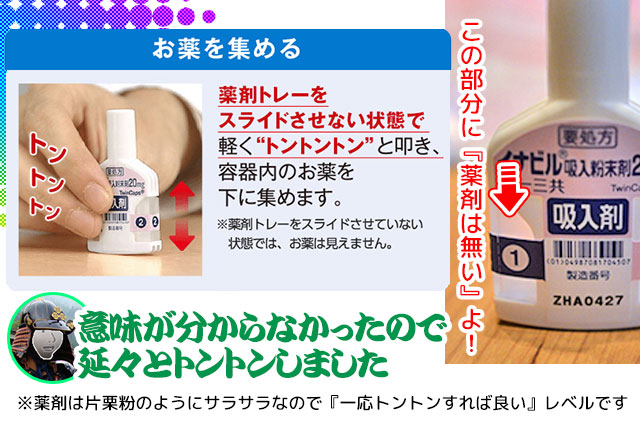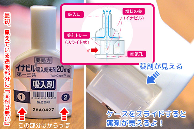 イナビルは『吸引薬』➡ (粉薬を)吸うタイプの薬です。