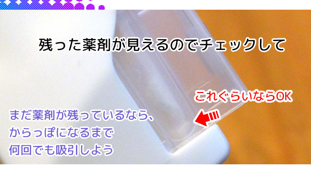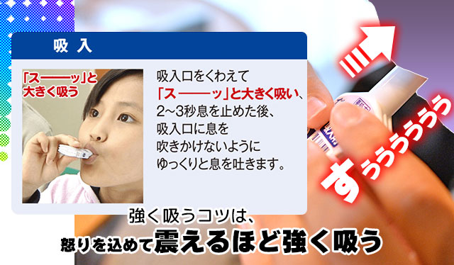 薬剤が中途半端に残らないよう、強く震えるほど吸うのがコツ。
