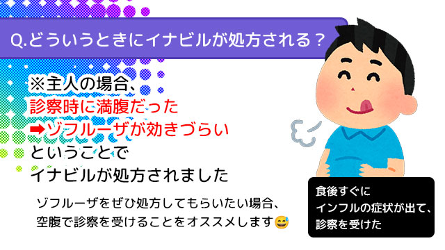 「じゃあゾフルーザだと効きが悪いから、イナビルを出すね」ということで処方されたのだそうです。