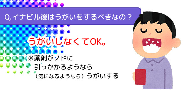 薬剤がノドにひっかかって、気になるようならうがいをすればよい…だそうです。