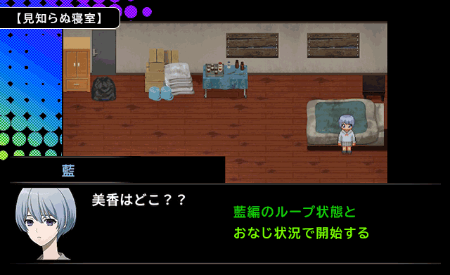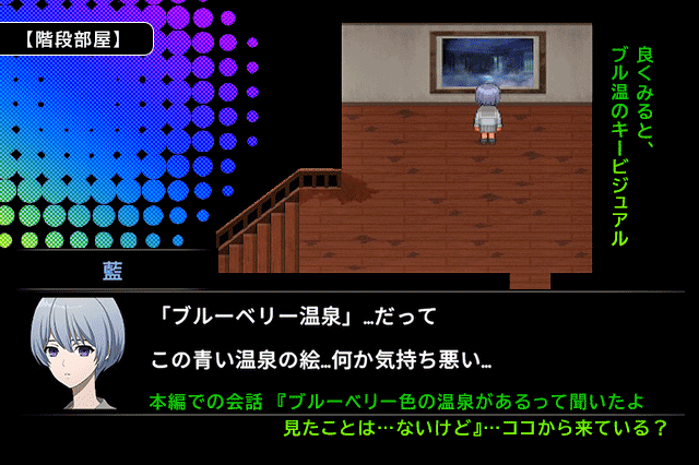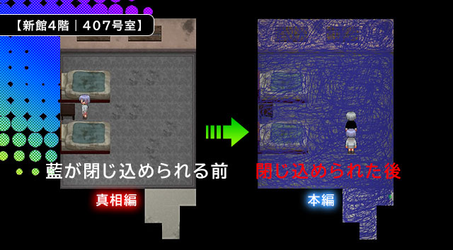 ところが…(本編で)藍を解放した直後に部屋に入ると、部屋が真っ青になっている。