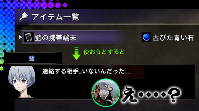 藍の初期所持アイテムは【藍の携帯端末】。彼女はすでにスマホを所持している。