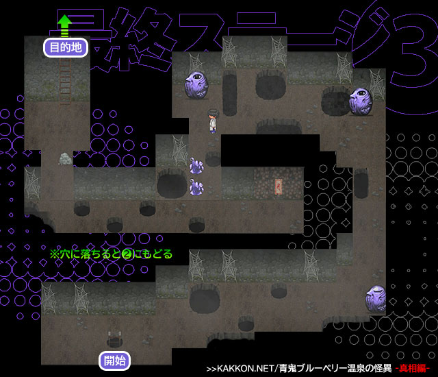 【攻略04】青鬼 ブルーベリー温泉 -真相編- |神殿~大穴 (強制横スクステージ)【MAPあり】