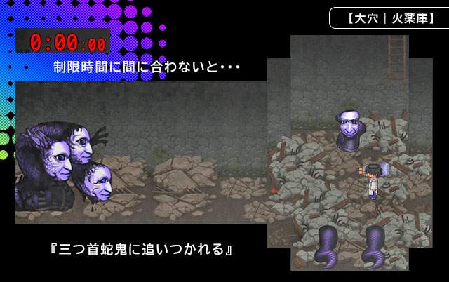 『三つ首蛇鬼に追いつかれた』というゲームオーバーになる。