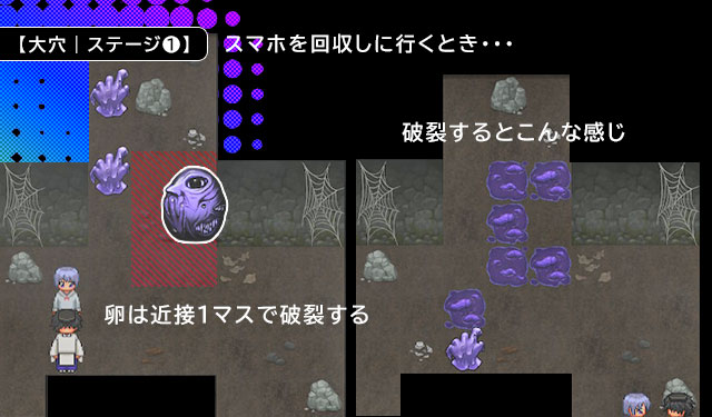 卵は近接1マスで、1呼吸を置いてから破裂する。