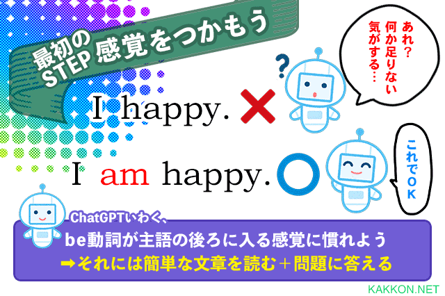 今回かっこんがチャットGPTと相談しながら『be動詞を感覚+理屈で理解できる記事』を作成いたしました(※本来は保護者・教育者に向けで作成)