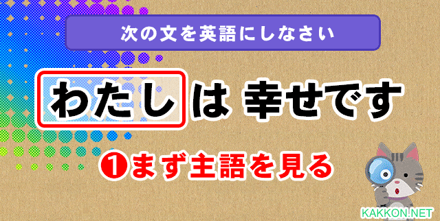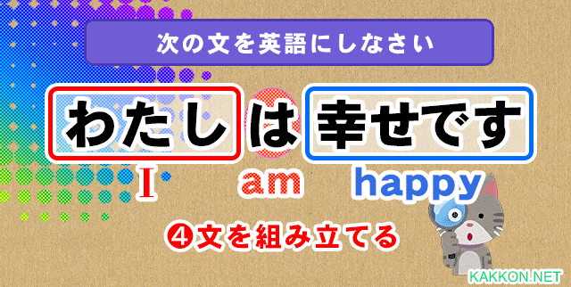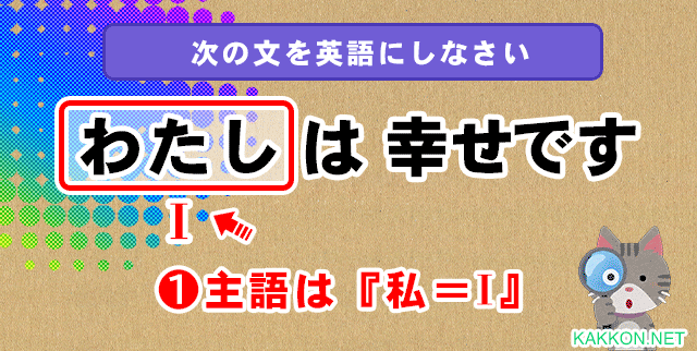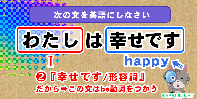 これで主語=I / 形容詞=happyが判明しました。