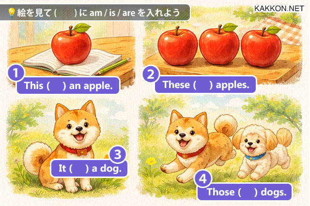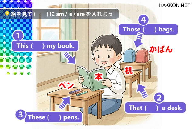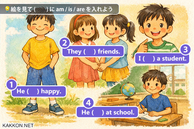 💡絵を見て( )に am / is / are を入れよう