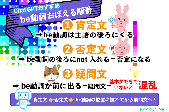 Chat GTPおすすめ『be動詞をおぼえる順番』がこちら👇
