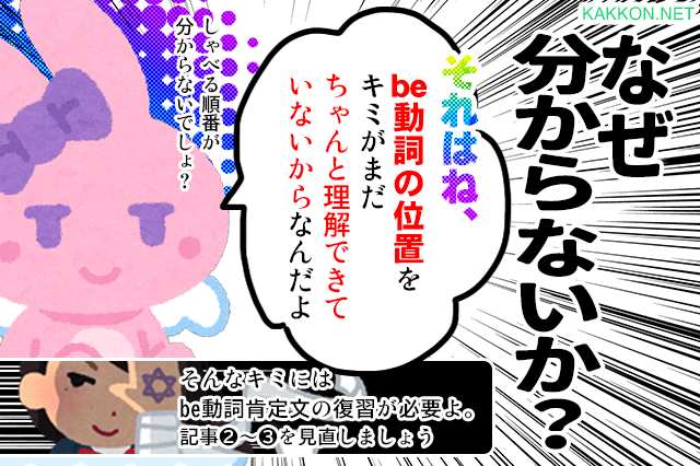 主語の後ろにbe動詞がくることをおぼえる➡be動詞の後ろにnotが入ると否定文be動詞が先頭にくる基本ができていないと大混乱
