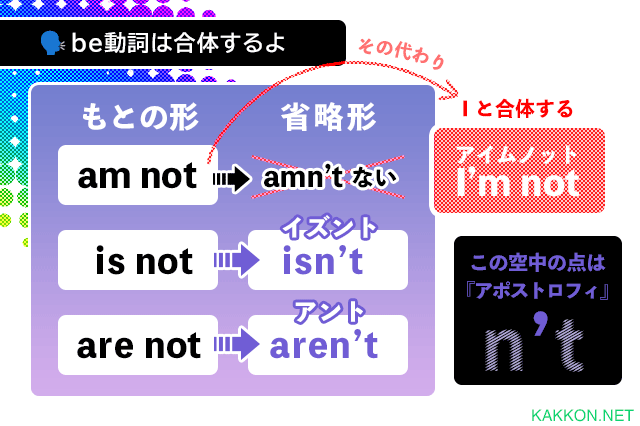 「省略形なんて知らないからワカらないよ」では、せっかくbe動詞が分かっていても、意味がないからなんだよ。