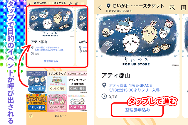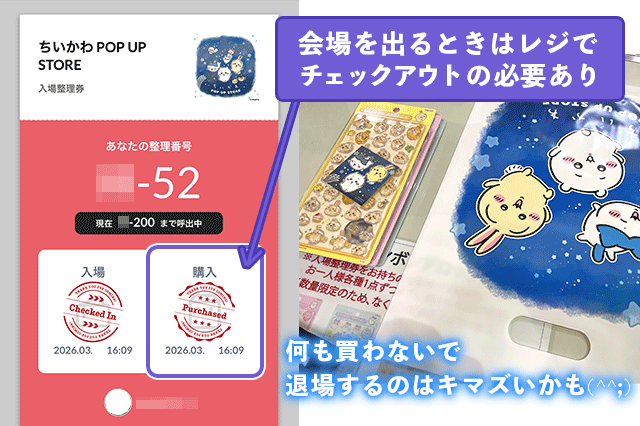 ちいかわポップアップストアで、初めて整理券入場をしたので、備忘録としてやり方を記します。