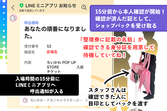 15分前から、スタッフさんによる本人確認が開始します。
