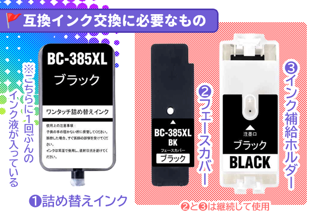 インクを単体で購入しても、❷と❸が無いとインクを詰めることができません。