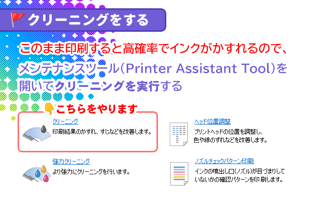 ❷かすれていたら『クリーニング』