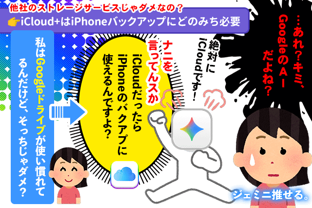 『Appleの提供するクラウドサービスに契約しなさい』とハッキリ言われちゃいました。