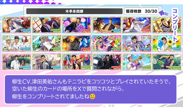 最終的にかっこんの最推し、木手君のカードを全収集できたのは満足です。次男は最推し赤也コンプリートならず。