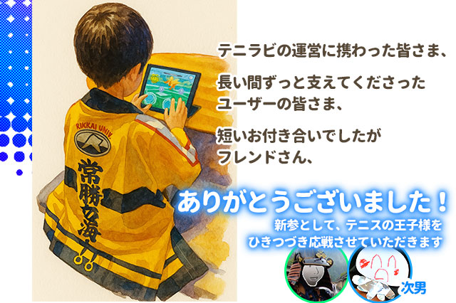 “『新テニスの王子様 RisingBeat』は、2025年8月31日 15:00をもちまして、サービスを終了させていただく運びとなりました。”