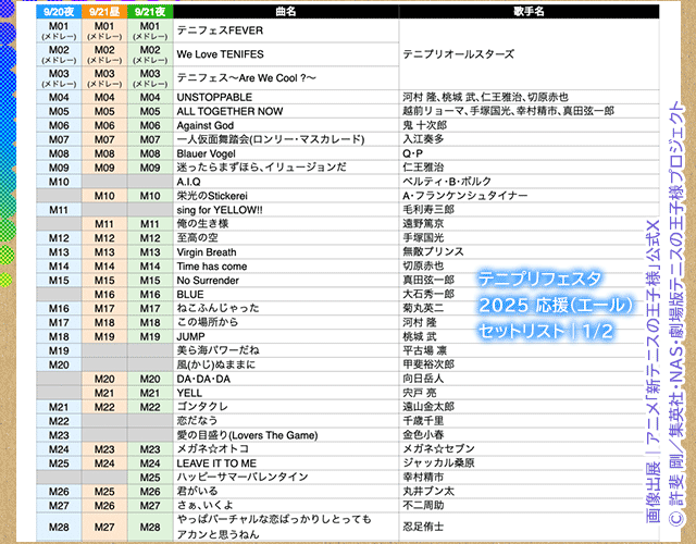 3公演分のセットリストを公開|アニメ「新テニスの王子様」公式X